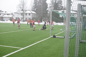 Vi ble raskt i tvil om vi hadde gjort det riktige valget. Regn og vind i starten av mars er sjelden optimalt fotballvær, og denne sure søndagen var intet unntak. Inn mot avspark gikk det rykter på tribuna (godt gjort med kun tre personer tilstede) om at hjemmelaget muligens bare var ni mann, men til alt hell var det ti orangekledde og én med keeperhansker som entret banen sammen med gjestene fra grunnlovsbygda og dommertrioen.