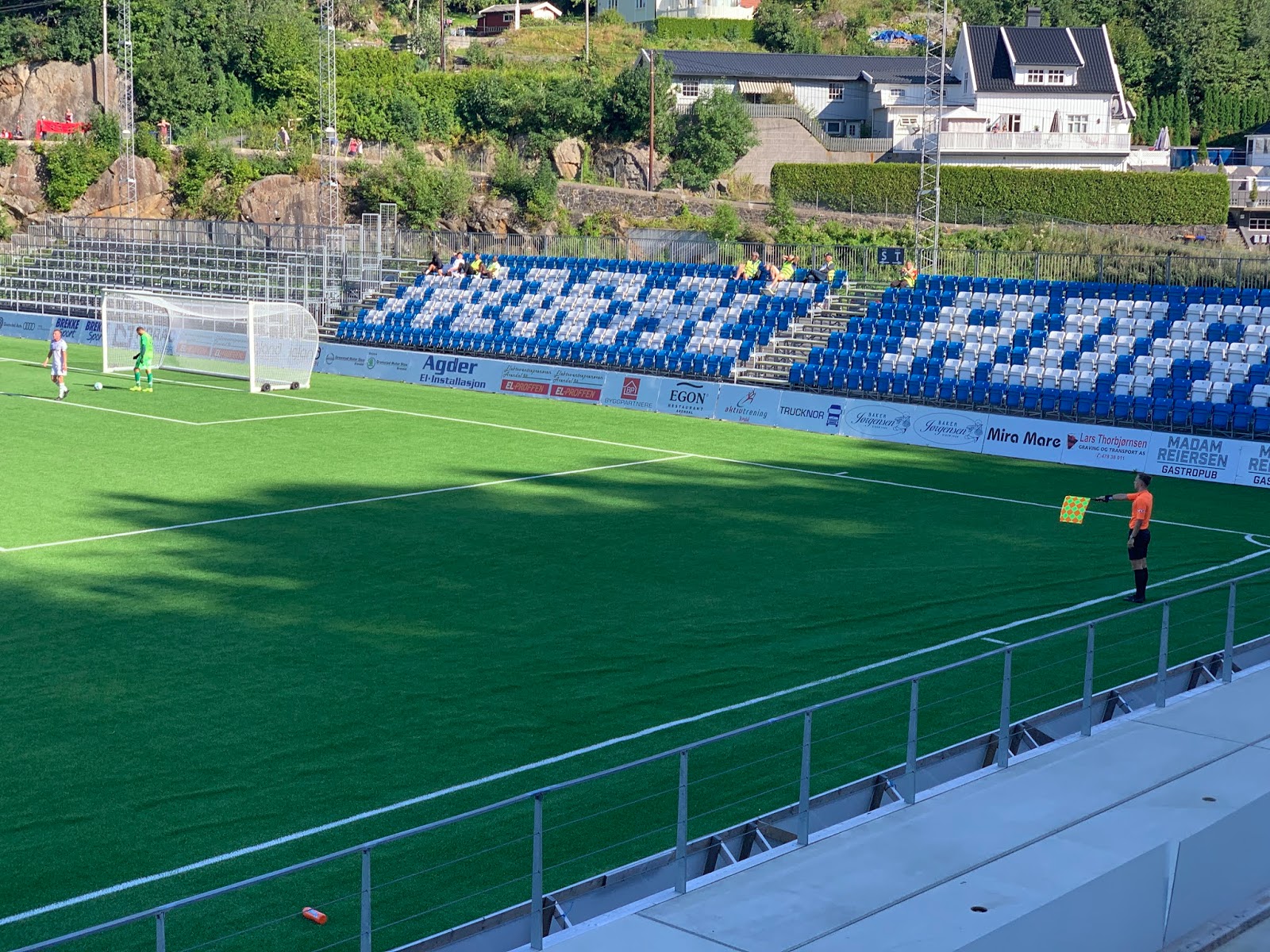 Dommeren benyttet anledningen med stopp i spillet til å kommandere en drikkepause, så de så speaker sitt snitt til å annonsere at dersom man ønsket «fast plass» i form av en pappfigur på stadion, så kunne det ordnes for kun 1000 kroner. Det var allerede over 20 stk som hadde gjort dette, og en av dem ble tilogmed truffet av en klarering underveis.