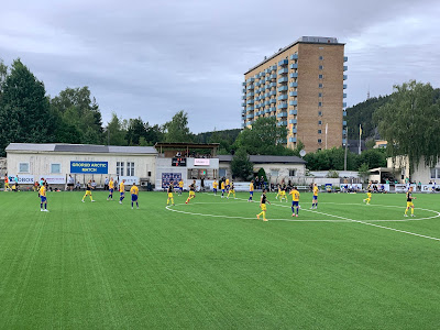 Jeg og flere med meg benyttet pausen til å gjemme oss i skyggen bak kioskbua (Faktisk var det så varmt at jeg glemte å spise vafler!), før dommeren igjen satte i gang kampen etter en liten hvil. Gjestene fortsatte sin dominans på banen, og etter ca fem minutters spill kom 2-4 på et frispark.