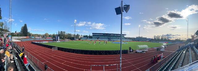 Og apropos bortesupporterne. Det viste seg at det hadde blitt solgt en god del billetter i døra også, så totalt var vi hele 580 personer på plass. Fem hundre og åtti der, altså. Dette må med god margin ha vært det mest solide bortefeltet iallfall jeg har opplevd fra Tromsø-hold i Eliteserien!
